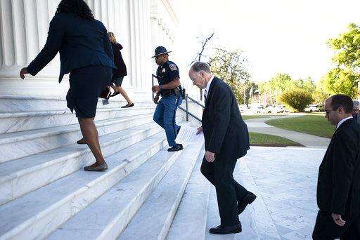 Alabama Governor Robert Bentley leaves a news conference on Friday, April 7, 2017, outside the Alabama Capitol building in Montgomery, Ala. Bentley vowed again he won't resign even as his political troubles mounted and lawmakers said they would move forward with impeachment hearings because of a sex scandal.(Albert Cesare /The Montgomery Advertiser via AP) The Associated Press