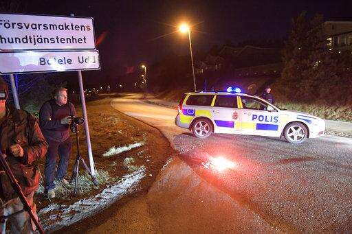 Swedish radio says Friday that three people have been killed in the crash and Swedish broadcaster SVT says shots have been fired. People in the area are fleeing the scene.