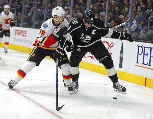 NOTES: Bishop lost for the fifth time in seven starts (2-3-2) since being acquired from Tampa Bay. ... Flames RW Kris Versteeg had a point for the fourth consecutive game. ... After combining for 19 penalties and 74 penalty minutes in their last meeting on March 29, the Flames and Kings were whistled just five times. ... Calgary scratched C Matt Stajan, sitting him after playing in the first 80 games this season.