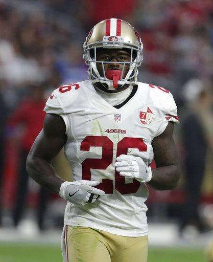 FILE - In this Nov. 13, 2016, file photo, San Francisco 49ers cornerback Tramaine Brock pauses during an NFL football game against the Arizona Cardinals in Glendale, Ariz. Police reported Friday, April 7, 2017, that Brock was arrested in Santa Clara, Calif., Thursday night after being accused of hitting a woman he was dating. (AP Photo/Rick Scuteri, File) The Associated Press