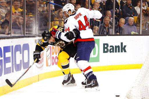 NOTES: Bruins F Jakob Forsbacka Karlsson made his NHL debut. He's the 10th player to make his NHL debut for the Bruins this season. ... F Brad Marchand missed the second game of his two-game suspension for spearing Tampa Bay defenseman Jake Dotchin in the groin. D Torey Krug, who left Thursday night's game with a leg injury, also did not play. ... Boston D Brandon Carlo left late in the first period after a check by Alex Ovechkin, and did not return. ... New England Patriots quarterback Tom Brady was a luxury suite for the game. ... Washington was without D John Carlson, who missed his third straight game with an unspecified injury, and F Brett Connolly, who was sick.
