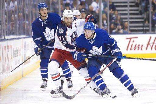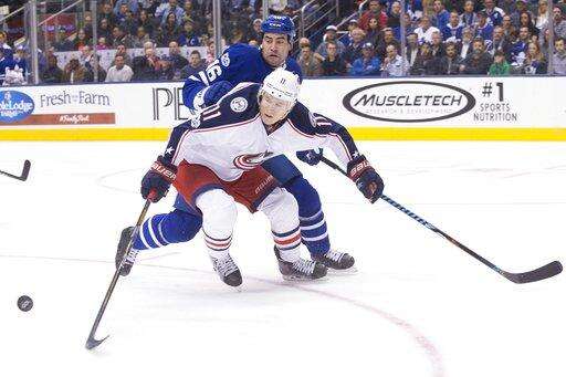 NOTES: Toronto rookie D Nikita Zaitsev left in the first period after a hit from Nick Foligno into the end boards. Zaitsev returned briefly before missing the rest of the game with an upper-body injury. He set a Leafs rookie record for minutes this season.