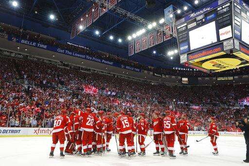 Fans were fired up hours before the puck dropped, they rose to their feet and roared when the team skated onto the ice just before the national anthem and didn't stop cheering even when the final horn sounded. And about 30 minutes after the game ended, it was difficult to spot an empty seat during a postgame ceremony that included former players such as Yzerman and coaches, including Hall of Famer Scotty Bowman.