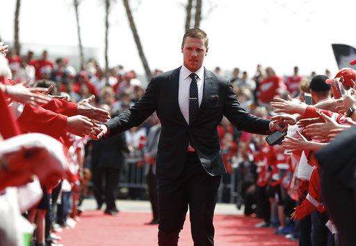 Fans arriving early enough pressed up against red velvet ropes to get autographs and take selfies with Zetterberg and former players such as Hall of Famer Nicklas Lidstrom and tough-guy, fan-favorite Darren McCarty. Those who didn't get there in time for a prime location settled for being perched on adjacent steps that climb to the arena and standing on both sides of Steve Yzerman Drive on a sunny, windy and warm afternoon.