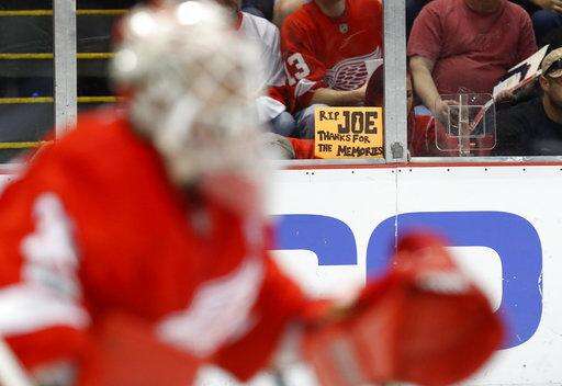 After the game, Detroit's players skated to center ice and raised their sticks. The fans, in turn, pointed commemorative sticks they were given toward the banner-filled rafters that recognize 11 Stanley Cup titles and retired jerseys of some of the game's greats, such as Gordie Howe and Yzerman.