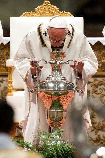 Francis opened the most solemn period of the Catholic Church's liturgical calendar by celebrating Mass on Thursday morning in St. Peter's Basilica before heading to Paliano. On Friday, he participates in the torch-lit procession at Rome's Colosseum re-enacting Christ's crucifixion.