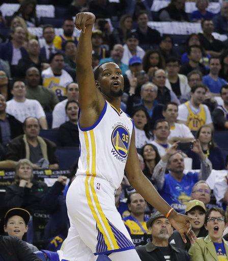 And their post-practice shooting went up a notch this week with the playoffs about to begin. The fierce competition on Curry's regular practice court became all-out entertainment with Durant healthy at last from a left knee injury that sidelined him for 19 games. The session lasted about 30 minutes. They talked and laughed, they cursed a little, they hollered at the basketball to cooperate.