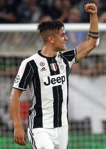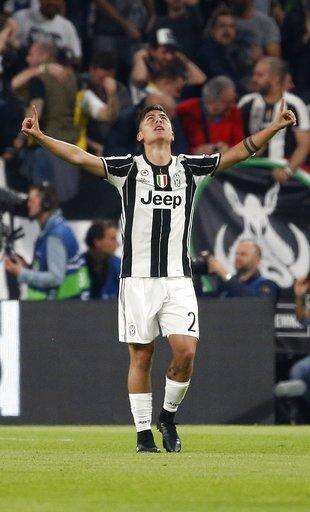 Juventus's Paulo Dybala celebrates after scoring his side's first goal during a Champions League, quarterfinal, first-leg soccer match between Juventus and Barcelona, at the Juventus Stadium in Turin, Italy, Tuesday, April 11, 2017. (AP Photo/Antonio Calanni) The Associated Press