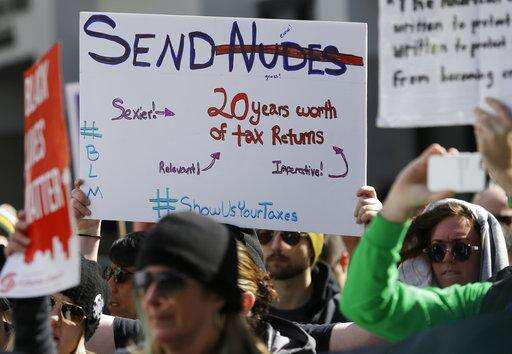 The demonstrations came just days before Tuesday's deadline for taxpayers to file their returns. Trump was the first major-party nominee in more than 40 years not to release his tax returns, saying it was because he was under audit. He later said that voters don't care.