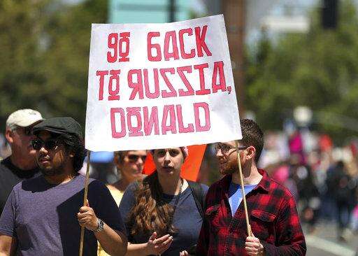 CHICAGO (AP) - Thousands of sign-waving, chanting protesters marched through streets across America demanding that President Donald Trump release his tax returns so the public can examine his business ties and determine whether he has links to foreign powers.