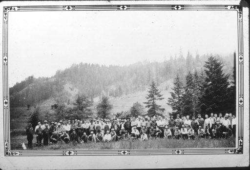 This 1930's era photo supplied by the U.S. Department of Agriculture, Forest Service shows a crew of forest workers in Tiller, Ore. Almost all of the downtown in Tiller, a dying timber town in remote southwestern Oregon, is for sale for $3.5 million and the elementary school is for sale separately for $350,000. A potential buyer has come forward but is remaining anonymous -- and back-up offers are still being accepted. (U.S. Department of Agriculture, Forest Service via AP) The Associated Press
