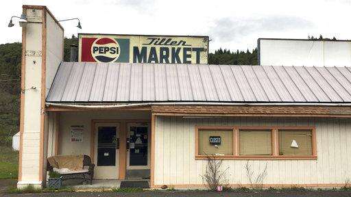 In this April 5, 2017 photo, the Tiller Market stands abandoned in downtown Tiller, Ore. Tiller, a dot on a map in remote southwestern Oregon, is for sale for $3.5 million, including the market, and the elementary school is for sale separately for $350,000. A potential buyer has come forward but is remaining anonymous -- and back-up offers are still being accepted. (AP Photo/Gillian Flaccus) The Associated Press