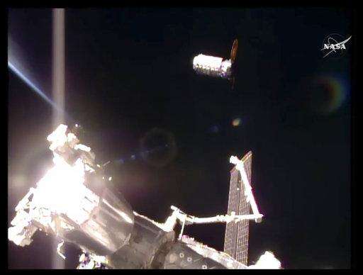 Astronauts used the station's big robot arm to grab the capsule, as the craft flew 250 miles (400 kilometers) above Germany.