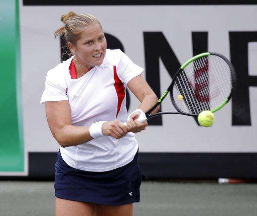 United States' Shelby Rogers returns a shot to Czech Republics's Katerina Siniakova during a Fed Cup semifinal tennis match, Saturday, April 22, 2017, in Wesley Chapel, Fla. (AP Photo/John Raoux)