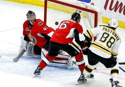 David Pastrnak also scored and Tuukka Rask finished with 41 saves to help the Bruins rally from a 2-0 deficit early in the second period and cut the Senators' lead to 3-2 in the best-of-seven series.