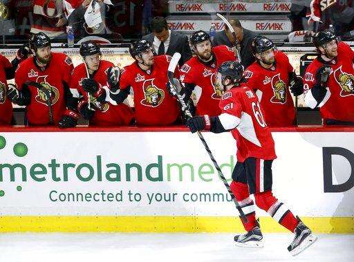 The Senators took a 1-0 lead in the first period when Mike Hoffman made a great pass to Stone, who slipped behind the Bruins defense and beat Rask on the backhand.