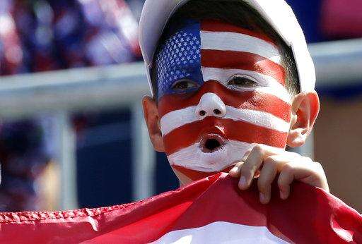 A fan cheers for the United States team during a Fed Cup semifinal tennis match between the United States' CoCo Vandeweghe and the Czech Republic's Katerina Siniakova, Sunday, April 23, 2017, in Wesley Chapel, Fla. (AP Photo/John Raoux)
