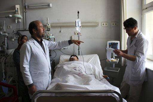 An injured soldier recovers in a hospital after Friday's attack at a military compound in Mazar-e-Sharif province north of Kabul, Afghanistan, Saturday, April 22, 2017. Gunmen wearing army uniforms stormed a military compound in the Balkh province, killing at least eight soldiers and wounding 11 others, an Afghan government official said Friday. (AP Photo) The Associated Press