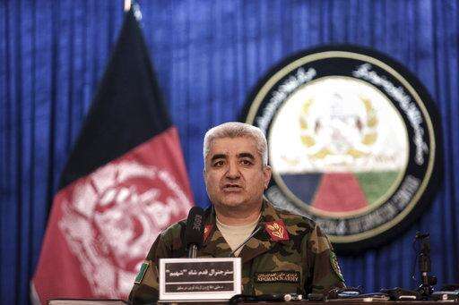 In this Feb. 18, 2017 photo, Afghan Army Chief of Staff, General Qadam Shah Shahim, speaks during a news conference in Kabul, Afghanistan. Afghan officials said the country's army chief and the defense minister have resigned following the weekend Taliban attack at a northern army base that killed more than 100 military and other personnel. The officials said that President Ashraf Ghani accepted the resignations on Monday, April 24, 2017. (AP Photo/Rahmat Gul) The Associated Press