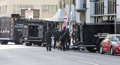 Los Angeles police officers were first called to 8th Street and Santee Street around noon after receiving a 911 call reporting gunshots in the area. Several streets were closed for hours as heavily-armed officers stood guard on sidewalks and police established a command post.