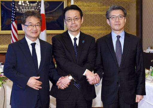 Japanese officials say U.S. representative for North Korea Policy Joseph Yun met Tuesday with his Japanese counterpart Kenji Kanasugi and Kim Hong-kyun of South Korea to share their latest analyses and discuss cooperation.