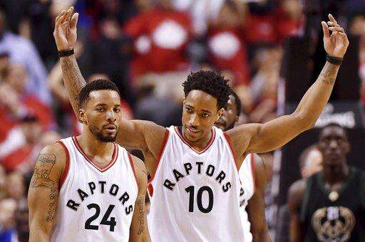 Serge Ibaka scored 19 points and DeMar DeRozan had 18 for the Raptors, who can advance to face defending champion Cleveland in the second round with a victory in Game 6 at Milwaukee on Thursday night.
