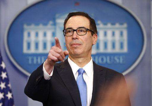 Treasury Secretary Steve Mnuchin points to a member of the media as he answers questions during the daily briefing in the Brady Press Briefing Room of the White House in Washington, Monday, April 24, 2017. (AP Photo/Pablo Martinez Monsivais) The Associated Press