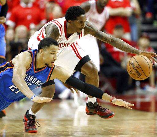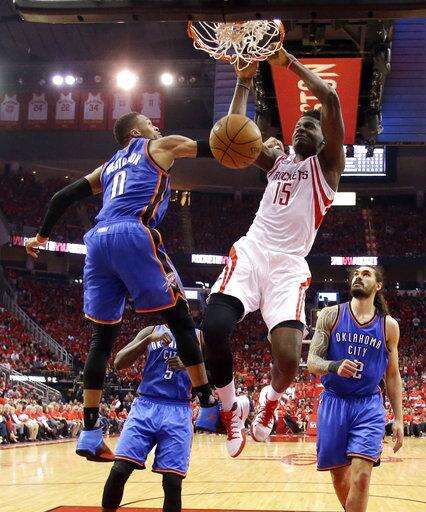HOUSTON (AP) - The Houston Rockets are headed to the Western Conference semifinals after using strong defense and a balanced scoring attack to overcome another big game by Russell Westbrook and eliminate the Oklahoma City Thunder with a 105-99 victory in Game 5 on Tuesday night.