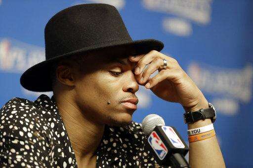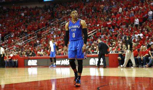 After scoring 20 points in the third quarter, Westbrook made just 2 of 11 fourth-quarter shots in a disappointing end to a stellar season where he became the first player since Oscar Robertson in 1961-62 to average a triple-double by scoring an NBA-best 31.6 points a game, with 10.7 rebounds and 10.4 assists. He also set an NBA record for most triple-doubles with 42 to help the Thunder withstand the loss of All-Star Kevin Durant in free agency.