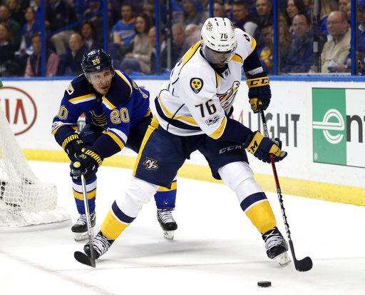 NOTES: Predators D P.K. Subban, a Toronto native, spent Thursday's day off at Busch Stadium watching the Blue Jays play the Cardinals in an interleague doubleheader. ... Nashville recalled G Marek Mazanec from Milwaukee (AHL) on Thursday. ... Blues F Ivan Barbashev was in the lineup after sitting out Game 1, replacing F Magnus Paajarvi, who was a healthy scratch.