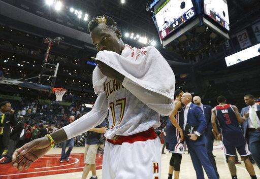 Atlanta Hawks center Dwight Howard (8) walks off the court in the second half of Game 6 of a first-round NBA playoff basketball series against the Washington Wizards, Friday, April 28, 2017, in Atlanta. (AP Photo/John Bazemore) The Associated Press