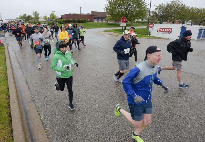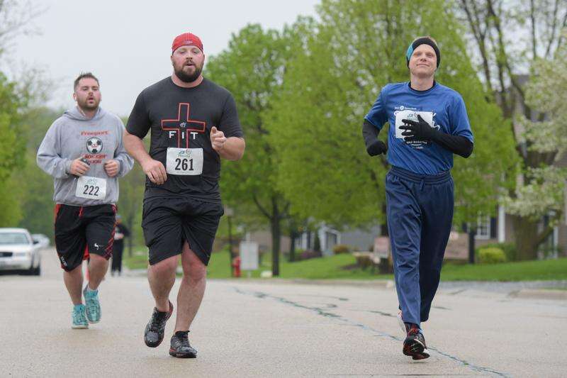 As of running through the hilly east side neighborhoods of Lake in the Hills toting a 30-pound rucksack wasn't challenge enough, Sunday morning's wet and chilly weather added another level of difficulty to the annual Run Thru Hills 5K and 10K races.