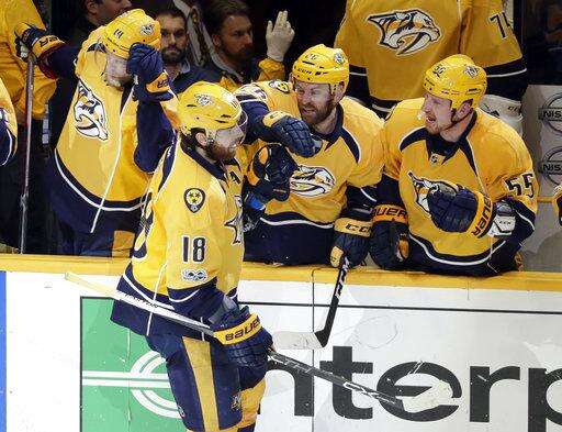 Allen got help from the crossbar on a shot by Neal and Viktor Arvidsson hit a post. Neal finally scored his second this postseason intercepting the puck, spinning and hitting the top corner with a wrister.