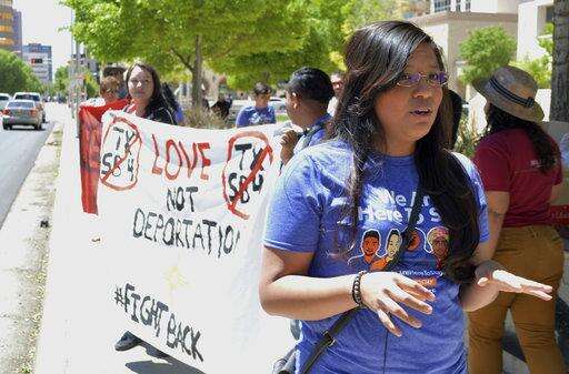 In this May 1, 2017 photo, Yazmin Irazoqui Ruiz, 25, of Albuquerque, N.M., speaks at an immigration rally in Albuquerque and about her mixed feelings regarding Cinco de Mayo. President Donald Trump's immigration policies and rhetoric are leaving some Mexican Americans and immigrants feeling at odds with a day they already thought was appropriated by beer and liquor companies, event promoters and local bars. (AP Photo/Russell Contreras) The Associated Press