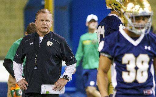 SOUTH BEND, Ind. (AP) - The "new" version of Brian Kelly is fitter, more connected to his team, less connected to his offense, not as likely to unload on a player at practice and - for the first time in his career - entering a season in real danger of losing his job.
