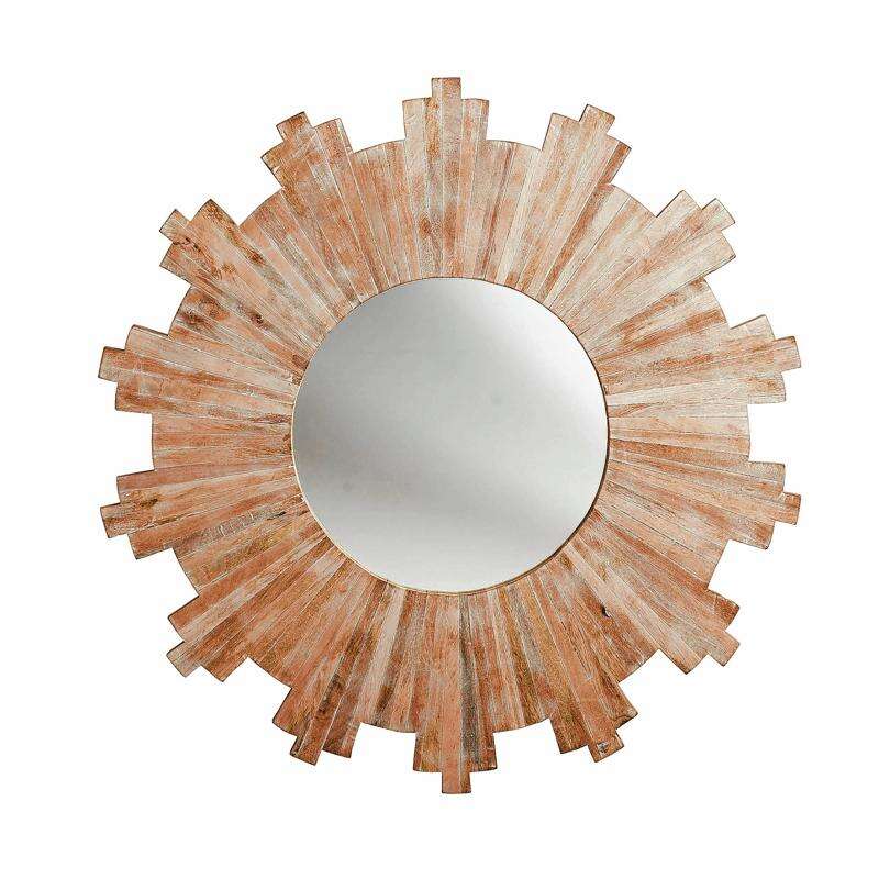 If you have a room with a lot of squares and edges, add a round mirror. "Interest on the wall is important," says Lisa Puchalla of Lily-Mae Design in Washington, D.C., who likes Wisteria's Nouveau Sunburst Mirror ($399), hand-carved out of mango wood.