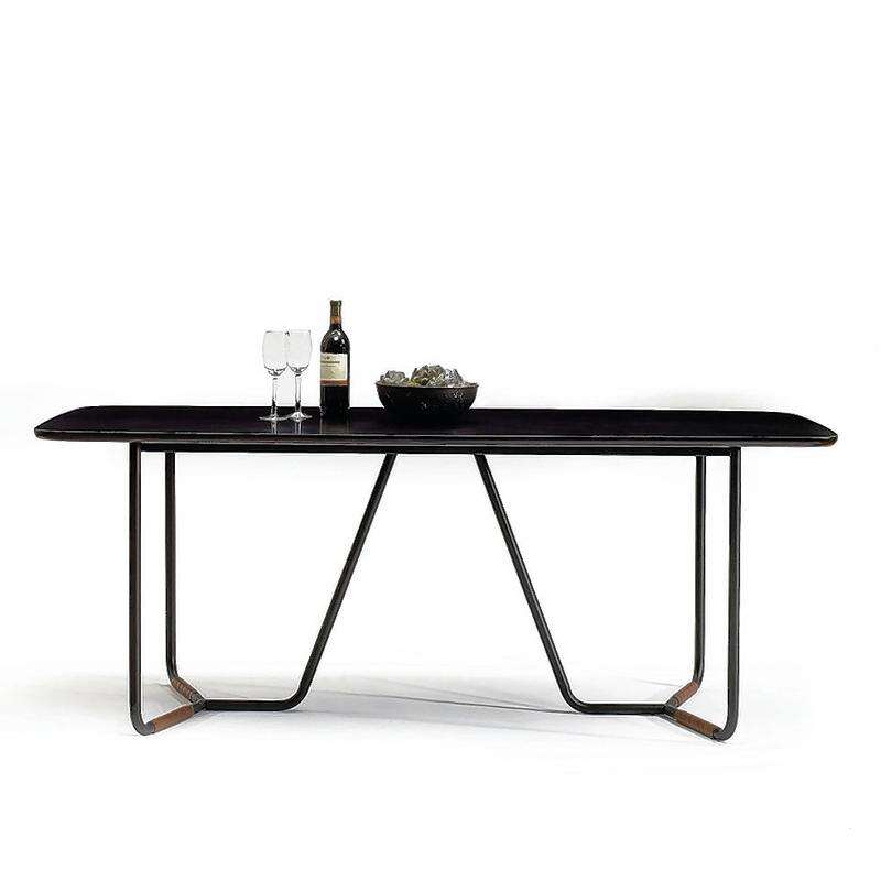 "Spaces such as dining rooms and living rooms are usually square or rectangular and they have sharp corners," says Lisa Puchalla of Lily-Mae Design in Washington, D.C. "Incorporating round items in that space lends to making that room feel less like a box." The Boot Leg Dining Table ($750) has leather-wrapped, bent tube legs, ready for mixing and matching chairs.