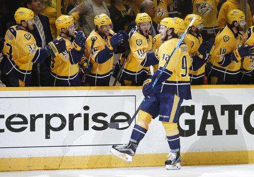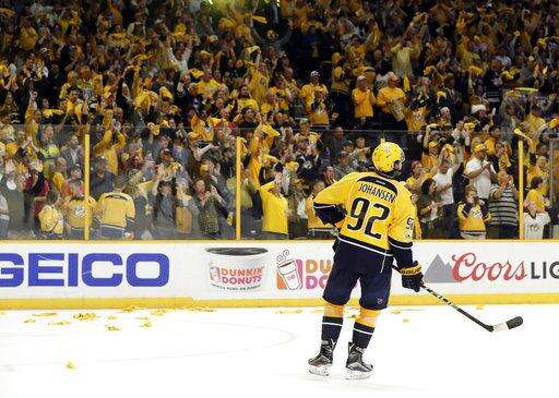 NASHVILLE, Tenn. (AP) - Ryan Johansen celebrated his game-winning goal with a windmill fist pump, and the Nashville Predators finished off the rest of a thrilling third period with the standing-room only crowd on their feet anticipating history.