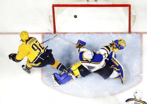 Allen kept the Blues close as he had all series, stopping Filip Forsberg on a breakaway with 13:31 left. But Jarnkrok scored with a minute to go to clinch it, amping up Nashville's celebration.