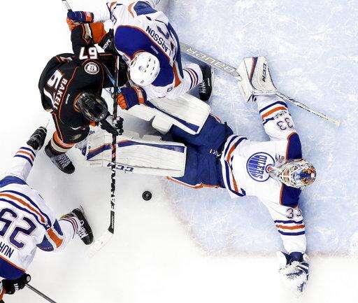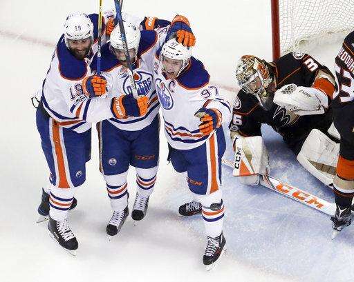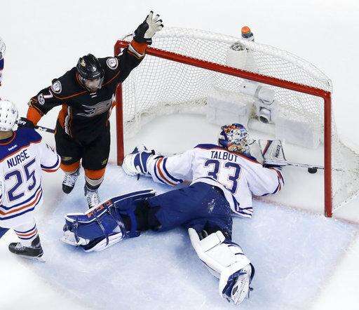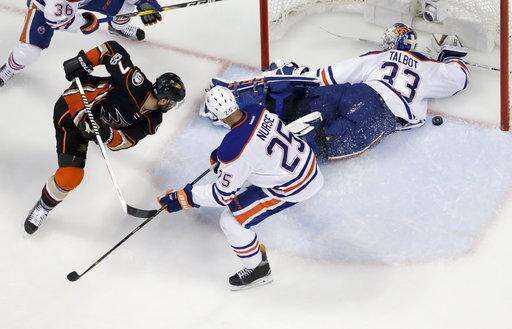 NOTES: D Oscar Klefbom returned to Edmonton's lineup after missing Game 6 with an upper-body injury. ... Anaheim was without two key injured veterans. D Kevin Bieksa missed his sixth straight game, while F Patrick Eaves missed his fourth straight game with a leg injury. The late-season acquisition has played in a Game 7 seven times in his career, most among the Ducks. ... Mike Trout and Garrett Richards crossed Katella Avenue from Angel Stadium to watch the game.