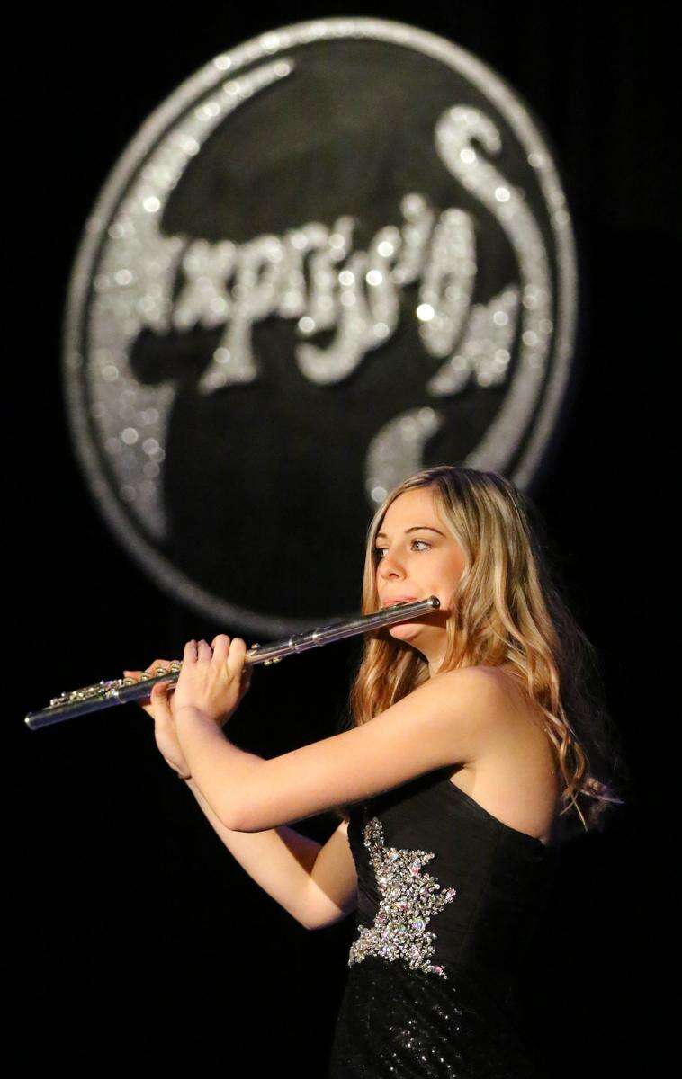 Aly Monk plays a flute solo as The Expressions show choir performed at Buffalo Grove High School. This was the first of three final shows in the group's 43-year history Friday night.