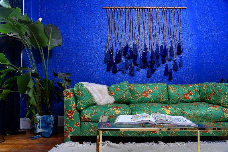If you have a large, blank wall to fill, don't immediately think gallery wall, which is a strategically arranged collection of art pieces that can cost a fortune to frame. Instead opt for a large anchor piece, such as a giant map or a handmade installation. For my living room, I searched "DIY backdrop" for inspiration and found on a wedding website instructions on how to make a huge tassel hanging.