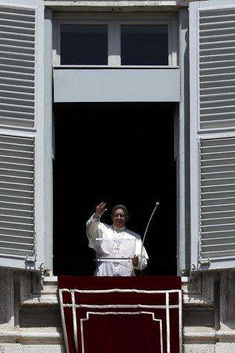 Pope Francis waves to faithful from his studio's window overlooking St. Peter's Square on the occasion of the Regina Coeli noon prayer at the Vatican, Sunday, May 14, 2017. (AP Photo/Gregorio Borgia) The Associated Press