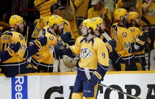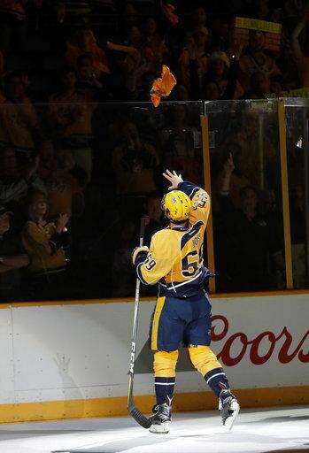 Forsberg tied it up with his third goal in as many games. When officials first waved off a would-be goal by Colton Sissons at 6:25 and then Ryan Johansen's goal at 6:33, fans started tossing towels onto the ice.