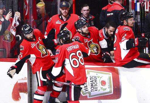 Hoffman fired a slap shot through traffic off a pass from Fredrik Claesson to put the Senators ahead at 1:34 of the third. Bobby Ryan also scored a rare power-play goal for Ottawa.