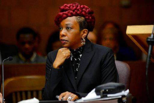 Robyn Liddell, assistant attorney general and secondary prosecutor, sits in the courtroom during the second portion of Larry Nassar's preliminary hearing on sexual assault charges on Friday, May 26, 2017 at the 55th District Court in Mason. Mich. A gymnast testified Friday that Nassar, a Michigan sports doctor accused of sexual assaulting dozens of women and girls asked her father to leave the room before he molested her during a 2012 appointment for a heel injury. (Julia Nagy/Lansing State Journal via AP)