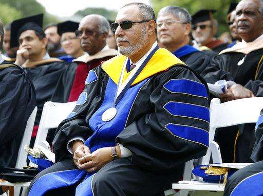 In this Saturday, May 13, 2017 photo, Physics professor Abdallah Darwish watches a graduation ceremony at Dillard University in New Orleans. Dillard University graduates more physics majors - and, notably, more female physics majors - than far bigger schools with more resources. âI believe in women, especially minority women,â said Darwish, who arrived in 1998 and has built a multi-million dollar laser lab for research. âThey are not less than anybody else. Just give them the chance and they will be the best. Give them what they need, and they will do.â (AP Photo/Gerald Herbert)