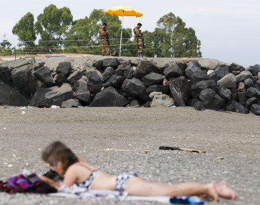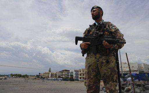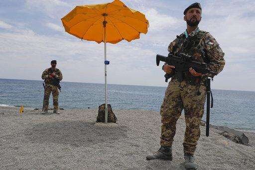 An Italian army officer patrols a beach at Giardini Naxos near by the Sicilian town of Taormina, southern Italy, ahead of a G7 summit scheduled for May 26 and 27, in the Sicilian town of Taormina, southern Italy, Thursday, May 25, 2017. Four leaders are making their G7 premier, U.S. President Donald Trump, France's Emmanuel Macron, Britain's Theresa May and the Italian host, Paolo Gentiloni. (AP Photo/Luca Bruno) The Associated Press