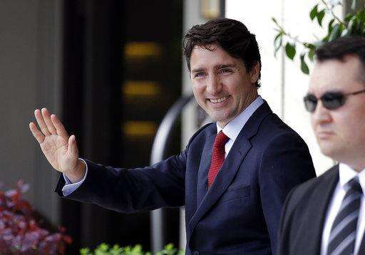 FILE - In this May 18, 2017 file photo Canada Prime Minister Justin Trudeau gives a wave as he departs a hotel following a meeting with Washington state Gov. Jay Inslee, in Seattle, WA, United States. Four leaders are making their G7 premier in the Sicilian town of Taormina, southern Italy, on May 26 and 27, 2017. U.S. President Donald Trump, France's Emmanuel Macron, Britain's Theresa May and the Italian host, Paolo Gentiloni. (AP Photo/Elaine Thompson, files) The Associated Press