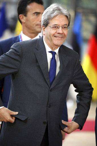 FILE - In this April 29, 2017 file photo, Italian Premier Paolo Gentiloni arrives for an EU summit at the Europa building in Brussels, Belgium. Four leaders are making their G7 premier in the Sicilian town of Taormina, southern Italy, on May 26 and 27, 2017, U.S. President Donald Trump, France's Emmanuel Macron, Britain's Theresa May and the Italian host, Paolo Gentiloni. (AP Photo/Olivier Matthys, file) The Associated Press